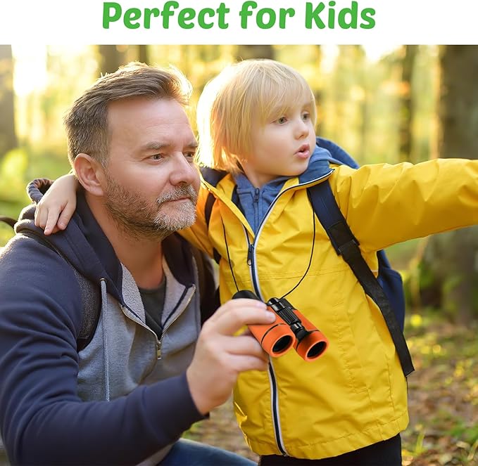 • Versatile Applications: the child binoculars are collapsible to fit the distance between the eyes, which can be applied for bird watching, learning, hunting, theatergoing, boating, hiking, etc., allowing kids to enjoy the distant scenery