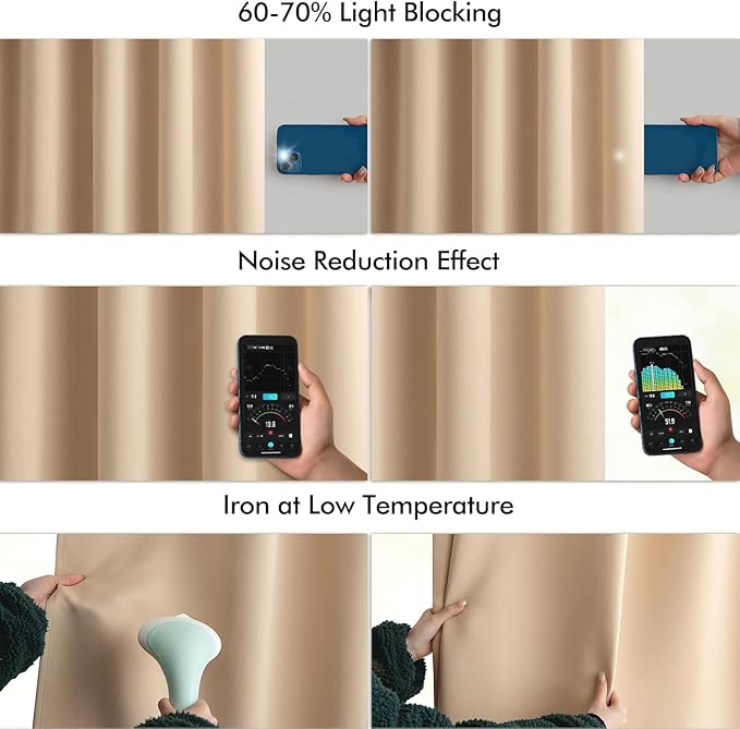 • LIGHT BLOCKING: Featuring triple weave stitching, these curtains can block 60%-70% of light and UV rays (dark colors work better). They can protect your furniture from fading and provide complete privacy and comfort for your nap or TV time.