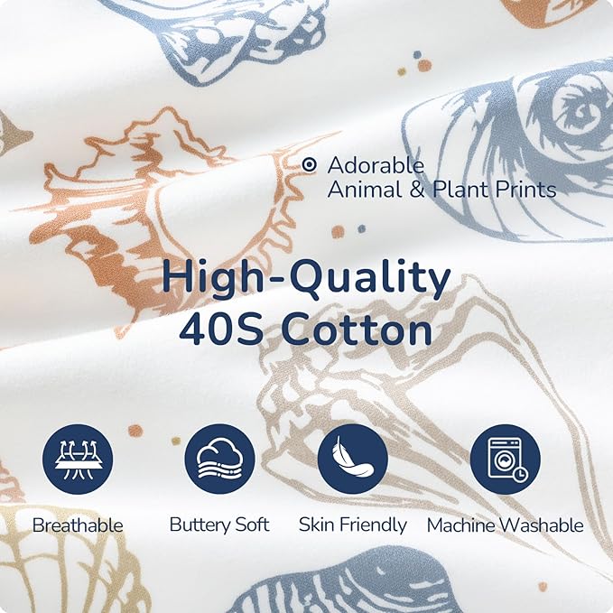 Baby Sleep Sack 3-6 Months, Cotton Detachable Long Sleeve Sleep Sack, 1.0 Tog Toddler Sleeping Sack with Temperature Strips, 2-Way Zipper Wearable Blankets for Newborns, Ocean