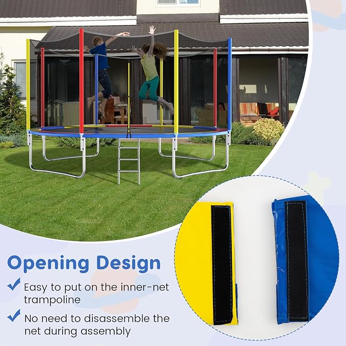 • [Easy & Quick Installation]: The opening design makes it easy to put this trampoline pad on the inner-net trampoline. There is no need to disassemble the net during assembly, saving time and effort.