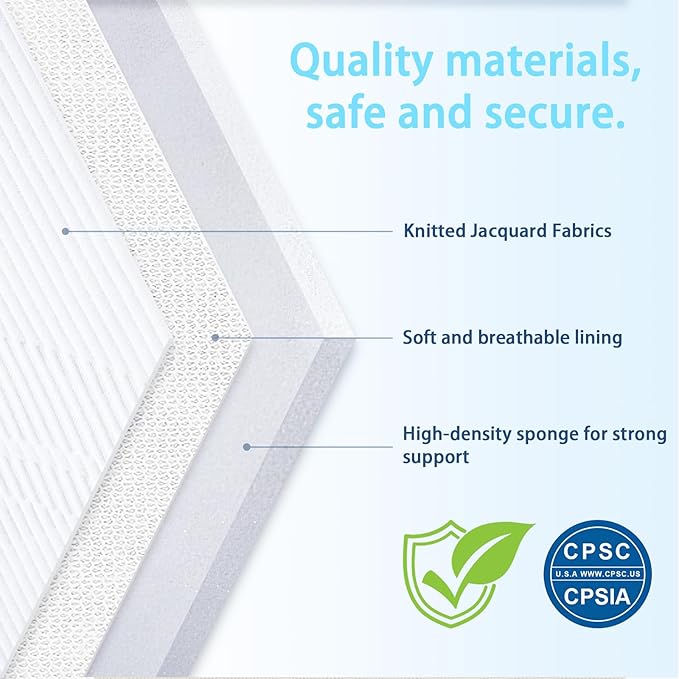 • [Efficient Support Foam] This pack and play mattress pad uses high-density foam that's firm yet comfortable. It provides targeted support for your baby's neck, back and hips, promoting healthy spinal alignment in all sleep positions