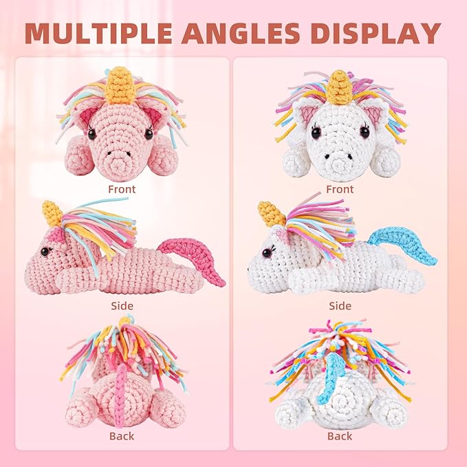 MOREJMTT Crochet Kit for Beginners, Learn to Crochet, Include Easy Knitting Soft Yarn, Step-by-Step Video Tutorial, Hook, Holiday Birthday Gift for Adults and Kids(Unicorn)