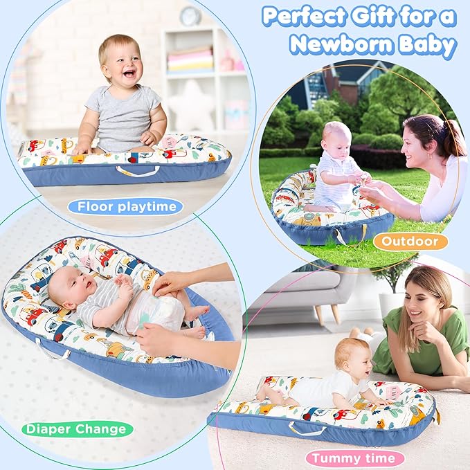 • ใ€๐๐š๐›๐ข๐ž๐ฌ ๐„๐ฌ๐ฌ๐ž๐ง๐ญ๐ข๐š๐ฅ๐ฌ & ๐ˆ๐๐ž๐š๐ฅ ๐†๐ข๐Ÿ๐ญ๐ฌใ€‘Our baby nest lounger is a MUST HAVE Baby Essentials and Baby Gifts. It can provides your little angel with a cozy, comfortable and safe playing environment. Parents can use it for baby tummy time playing, sitting support, changing diaper and so on. It will releases parents' hands, brings more convenience and entertainment to your life.(Babies must use this product under adult supervision!)