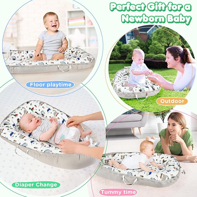 • ใ€๐๐š๐›๐ข๐ž๐ฌ ๐„๐ฌ๐ฌ๐ž๐ง๐ญ๐ข๐š๐ฅ๐ฌ & ๐ˆ๐๐ž๐š๐ฅ ๐†๐ข๐Ÿ๐ญ๐ฌใ€‘Our baby nest lounger is a MUST HAVE Baby Essentials and Baby Gifts. It can provides your little angel with a cozy, comfortable and safe playing environment. Parents can use it for baby tummy time playing, sitting support, changing diaper and so on. It will releases parents' hands, brings more convenience and entertainment to your life.(Babies must use this product under adult supervision!)