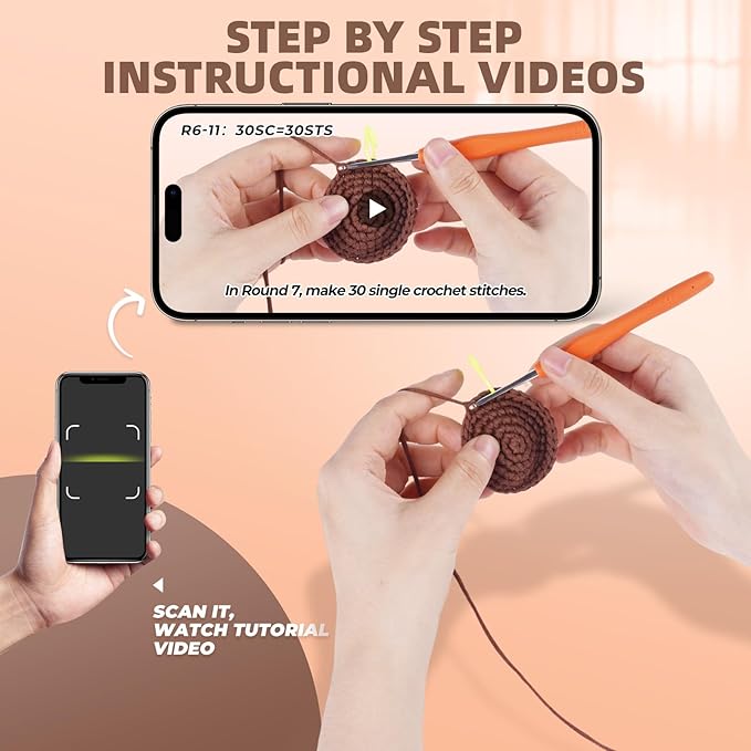 • 【3+ Hours of Video Tutorials】Simple, immersive, and beginner-friendly. Follow the entire plush crochet process with clear narration and expert guidance. Videos include chapter markers and playback speed controls to learn at your own pace. Ideal for first-time crocheters!