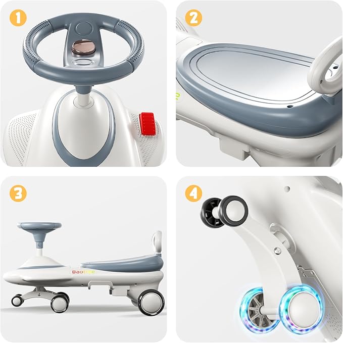 Kids Electric Ride On Car 12V - Electric Wiggle Car with Rechargeable Battery, LED Lights & Music,Anti-Rollover for Boys Girls Ages 3-8, Indoor/Outdoor Toy Vehicle up to 150 lbs