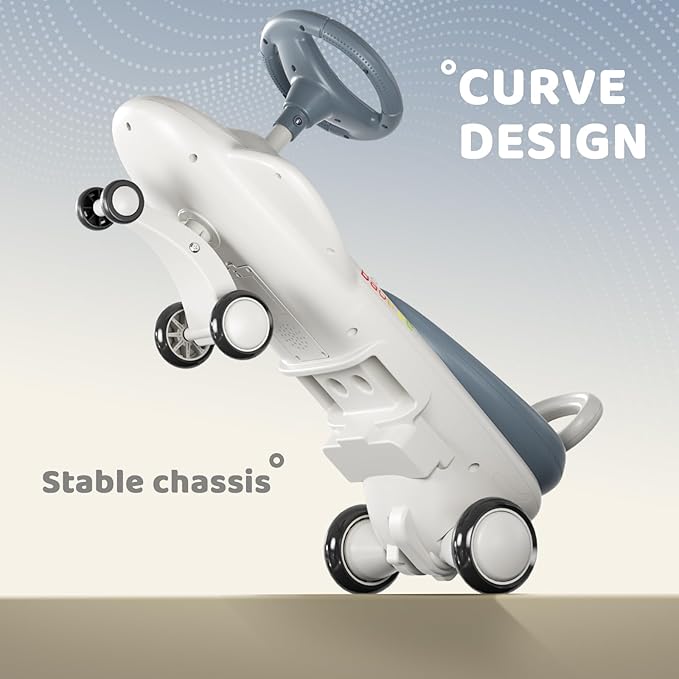 • 🎵 4D interactive entertainment system Exclusively configured with engine roar sound effects + 7-color gradient LED atmosphere lights, the steering wheel has a built-in Bluetooth speaker that can connect to the phone to play nursery rhymes/stories, and stimulate children's role-playing creativity.