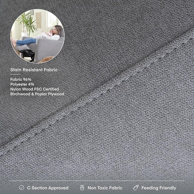 • SPILL-PROOF FABRIC & SUPERIOR CONSTRUCTION: Stain resistant and liquid repellent Live-Smart️ materials. Built with a birchwood and poplar plywood frame and offers extra padded cushions and a warranty on all moving parts, ensuring that the Glider stands the test of time and can grow with your family.