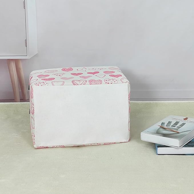 LANGYASHAN Rectangular Storage Bin Collapse Canvas Fabric Cartoon Storage Basket with Handles for Organizing Home Kitchen Boys and Girls Toys Office Closet Shelf Baskets (Rec Angel Heart)