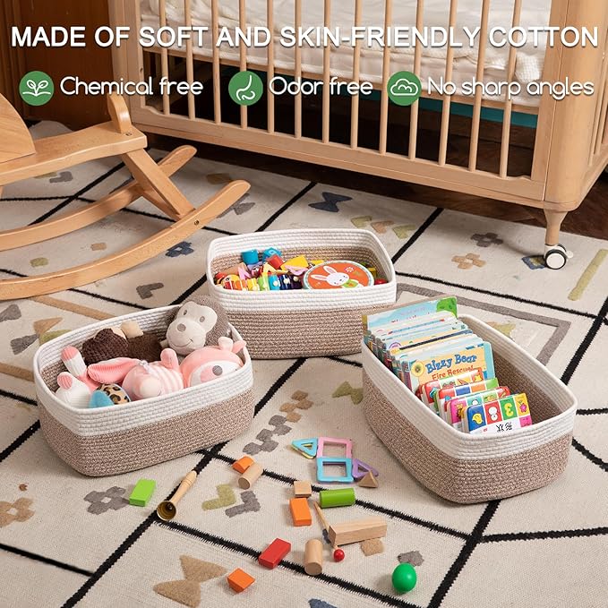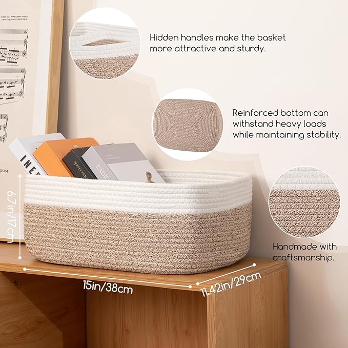• Flexible and User-friendly: Rectangle rope basket with foldable design and separate built-in handles for easy portability and stoarge. The woven basket handle is comfortable to the touch, they are very practical and suitable for children to pick up toys or carrying items around the house