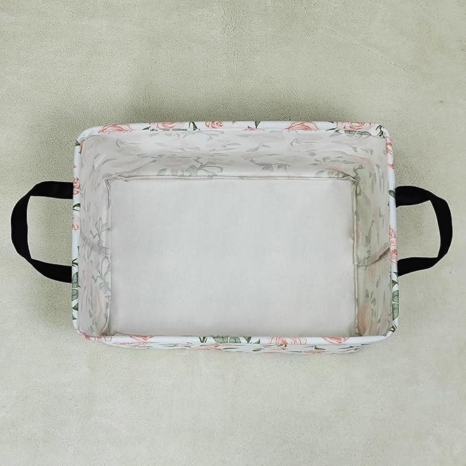 LANGYASHAN Rectangular Storage Bin Collapse Canvas Fabric Cartoon Storage Basket with Handles for Organizing Home Kitchen Boys and Girls Toys Office Closet Shelf Baskets (Rec Champagne Rose)