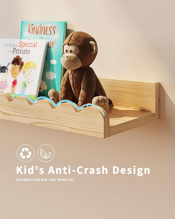 • High-Quality Wood: Crafted from premium hardwood, our wall-mounted bookshelf ensures durability and a long-lasting finish, making it a reliable addition to any child's room