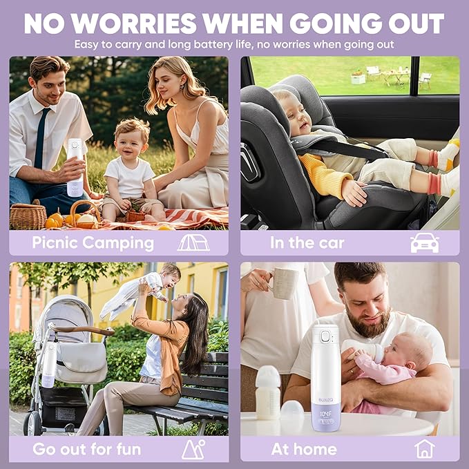 • 【3 Minutes Efficient Heating Technology】: Portable bottle warmer uses an advanced ceramic electric heating plate liner heating method to ensure that the heating process is safe and reliable. This portable baby bottle warmer uses advanced heating technology to quickly warm milk from room temperature to 98°F in just 3 minutes.
