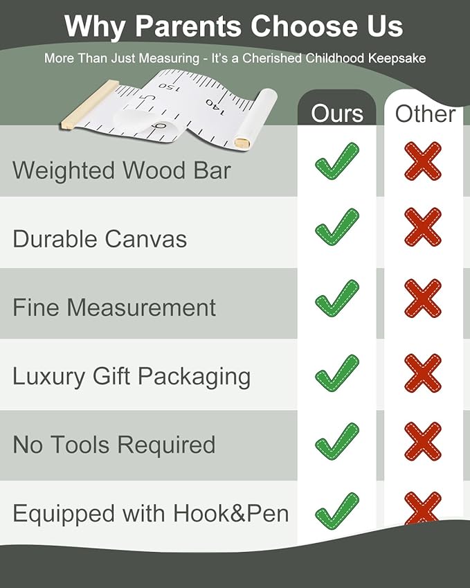 • 🎁Thoughtful Gift for Families – The ultimate sentimental gift for expecting parents, birthdays, or holidays! A practical yet sentimental kid height tracker for birthdays, baby showers, or holidays. Celebrate every inch of your child’s journey with this keepsake kids height measurement set.