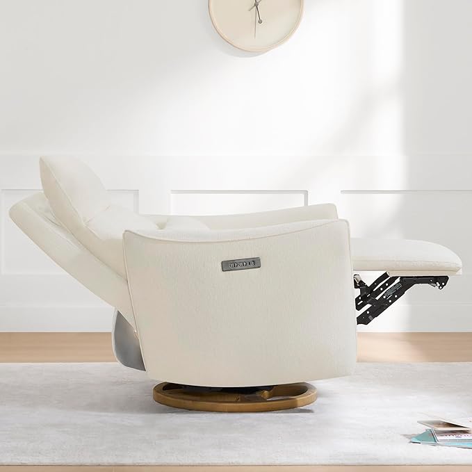 CHITA Swivel Rocker Recliner Chair, Power Nursery Glider Recliner, Nursery Rocking Chair with Adjustable Power Headrest, FSC Certified, Solid Wood Base, Cream