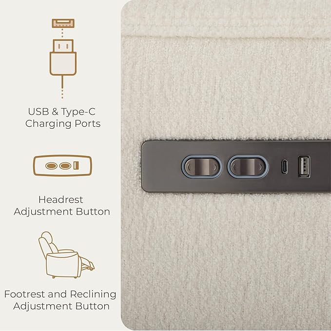 • Premium Dual-Motor Control - Seamlessly adjust your comfort with the dual-motor control system. The footrest and backrest move together with a single button, while the headrest adjusts independently. The backrest only reclines after the footrest is extended, allowing the seat surface to adjust from 90° to 135° in a stepless manner. This versatile design accommodates nursing, TV viewing, napping, and reading with ease. The electric headrest provides customized support for ultimate relaxation.