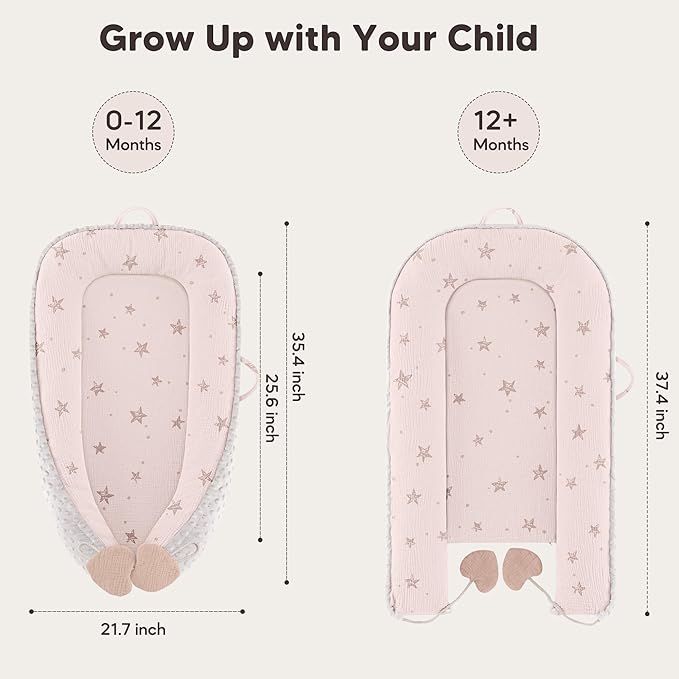 • Easy to Clean & Maintain: The baby lounger pillow pillow comes with a removable, machine-washable cover, making cleanup a breeze for busy parents. Its adjustable design grows with your baby, ensuring long-lasting use from infancy to toddlerhood.