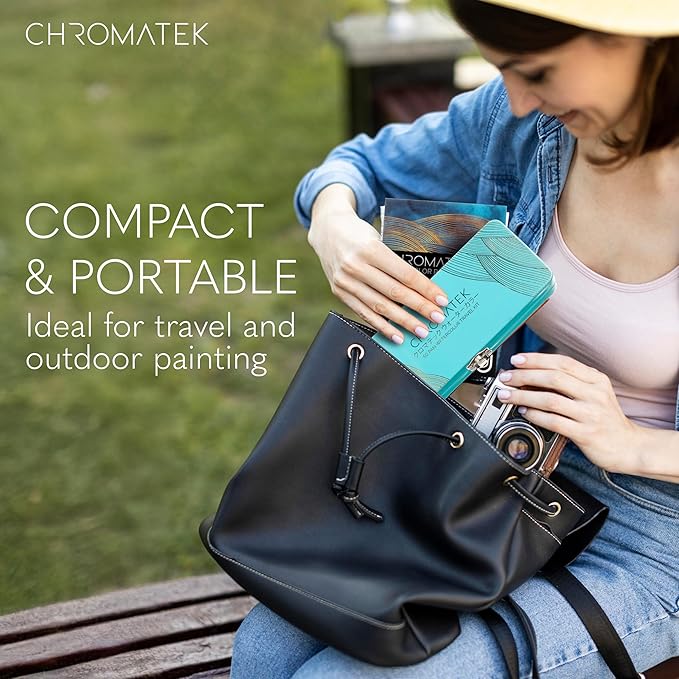 CHROMATEK Watercolor Paint Set – 50 Vivid Colors Including Transparent, Opaque & Pastel – Art Kit with Brush, Water Pen, Palette, Color Chart, Swatch Sheets, Pad & Metal Travel Case