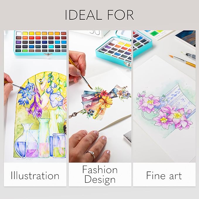 • 🌈 Vibrant, Blendable Pigments for Any Technique Create stunning gradients and expressive strokes using high-pigment watercolor paints that dry evenly and blend easily on various paper types. Perfect for journaling, sketching, and travel art.