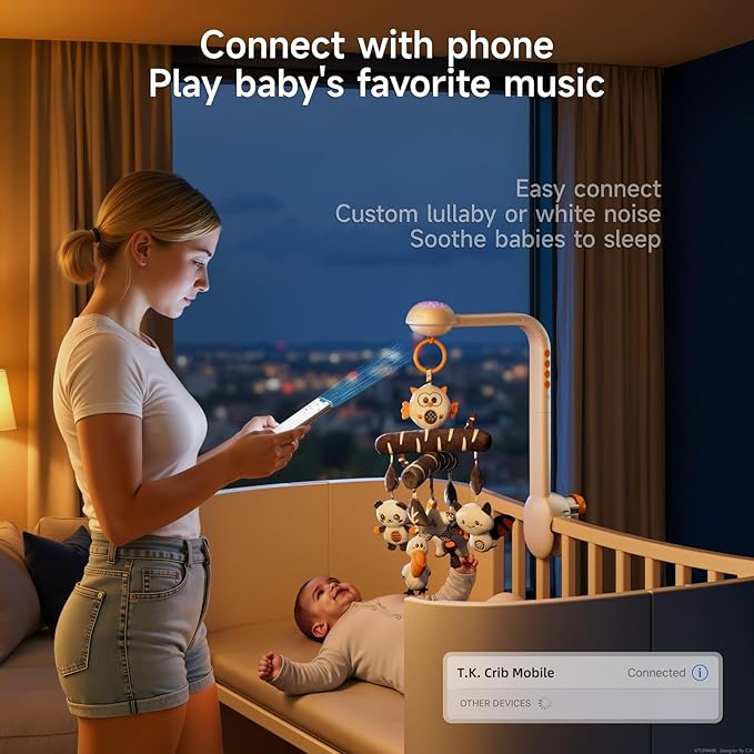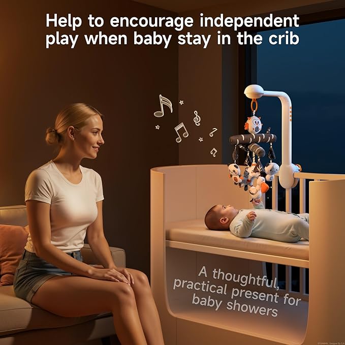 • Multifunctional Baby Crib Toys: Built-in multiple lights of different colors, multiple music (sleep music, nature sounds, piano music). The projector can project a starry sky scene with soft lights, and can also be used as a night light. Create a soothing sleeping environment for your baby.