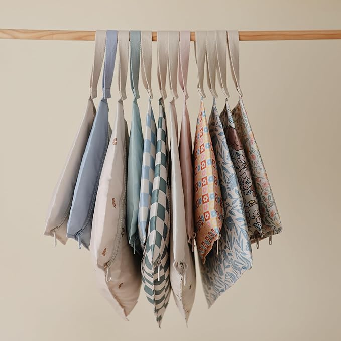 • Comfort on the Go: Featuring a zipper closure and machine washable, water resistant material, mushie wet bags are designed to help tackle messy situations on the go. The handles include a snap closure to easily hang or attach to a stroller.