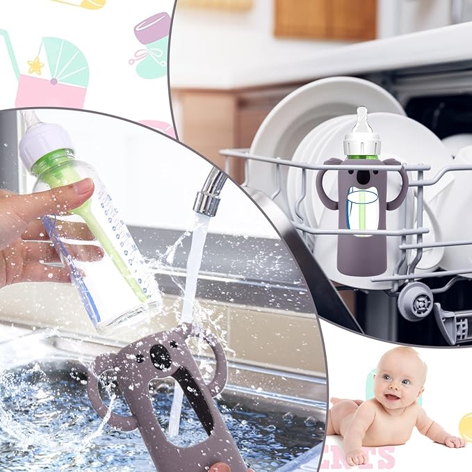 • Food Grade Silicone - Koala Silicone Baby Bottle Sleeves is made of food grade silicone,no chemical additives and BPA free, which is safe to use. The baby bottle sleeves use of anti-stick silicone material and unique shape design, will not stick to the dust,hairiness,etc, which make it safer and more secure for you to use