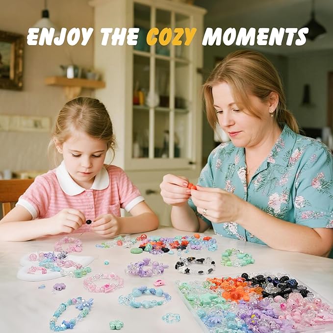 • Inspire Creativity with Fun DIY Projects: A great bracelet set for kids to create handmade gifts or friendship bracelets at home, which helps develop stronger hands-on abilities, imagination, and color perception. These beads for jewelry making help us stay away from video games, enhance creativity, and interesting crafts activities can also strengthen your connection with your family or friends