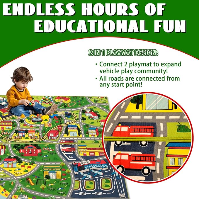 • Versatile Use: The car carpet for kids can serves as an educational tool for learning traffic rules, directions, and storytelling