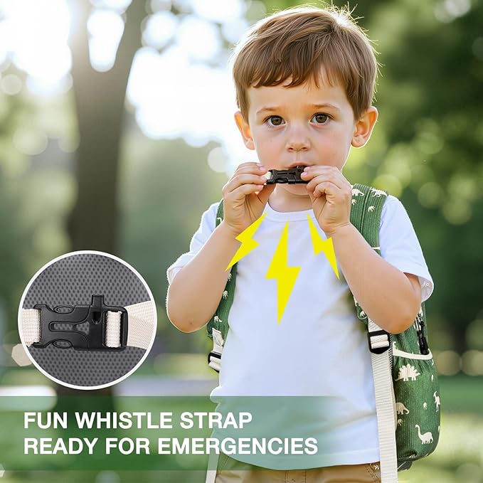 • 【Comfort Meets Safety】Built with breathable padding and ergonomic straps, this toddler backpack reduces pressure on little shoulders; A chest buckle with a built-in whistle adds playful functionality — it’s a fun feature for daily use and could provide help in unexpected situations