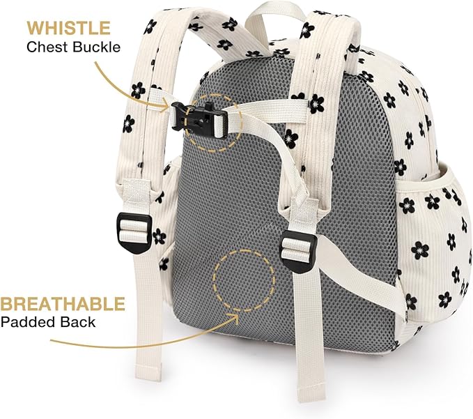 • 【Comfort Meets Safety】Built with breathable padding and ergonomic straps, this kids backpack reduces pressure on little shoulders. A chest buckle with a built-in whistle adds playful functionality — it’s a fun feature for daily use and could provide help in unexpected situations