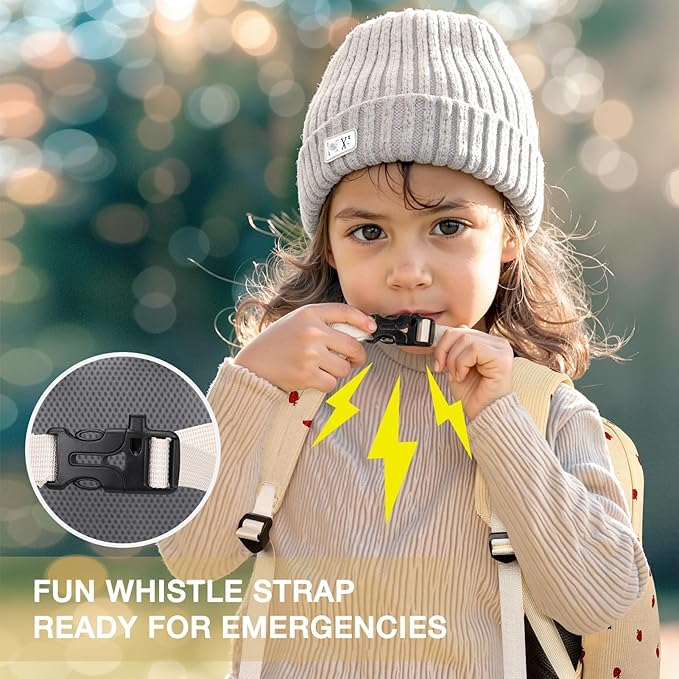 • 【Comfort Meets Safety】Built with breathable padding and ergonomic straps, this toddler backpack reduces pressure on little shoulders; A chest buckle with a built-in whistle adds playful functionality — it’s a fun feature for daily use and could provide help in unexpected situations