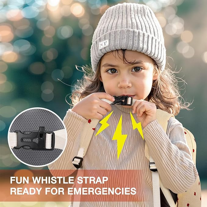 • 【Comfort Meets Safety】Built with breathable padding and ergonomic straps, this kids backpack reduces pressure on little shoulders. A chest buckle with a built-in whistle adds playful functionality — it’s a fun feature for daily use and could provide help in unexpected situations