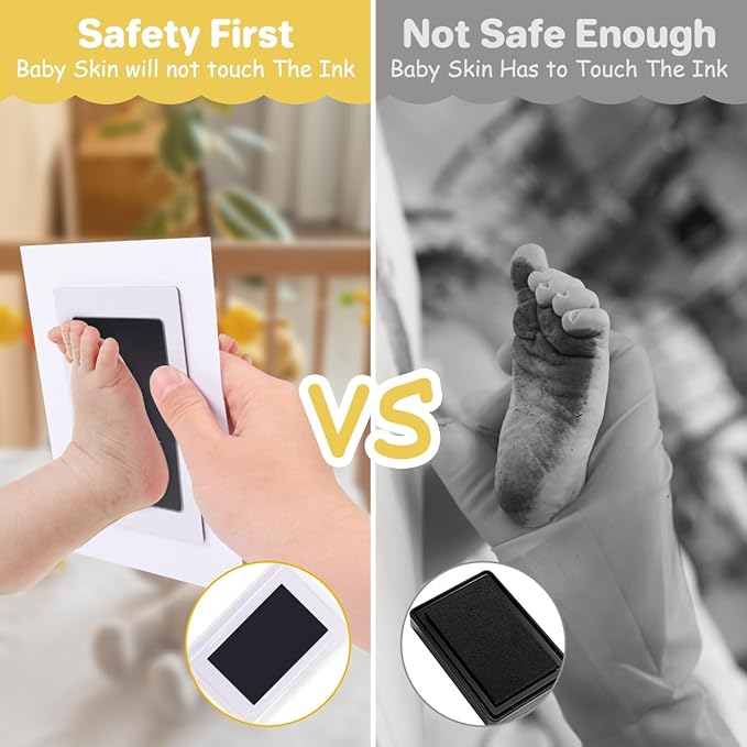 • Clean-Touch Inkless Pad:This newborn footprint kit features a mess-free ink pad that is safe for your baby's delicate skin, ensuring a clean and easy way to capture tiny hand and footprints. With the proper size of 3.7*2.3 inches, our inkless pad is perfect for newborn baby’s hand and footprints