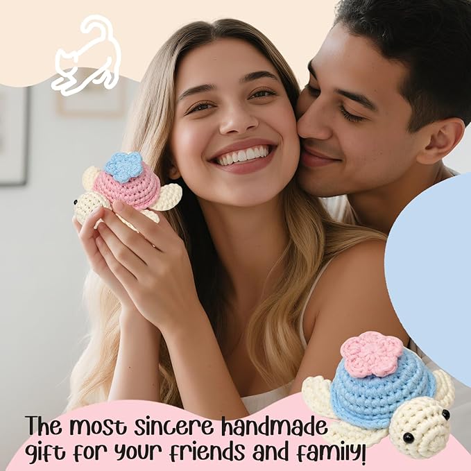 TAKADODO Crochet Kit for Beginners - Learn to Crochet Kits for Adults Beginner with Step-by-Step Video Tutorials - Crochet Kits for Adults and Kids (Turtle)