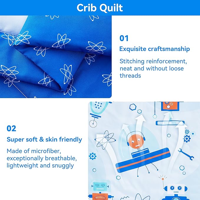Viviland 3 Pieces Baby Bedding Set for Boy Girls, Baby Bedding Set for Newborn, Infant & Toddler - Robot