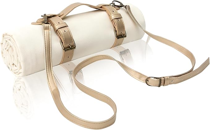 • Includes: 1 white canvas mat, faux leather handle/should strap, and webbing strap