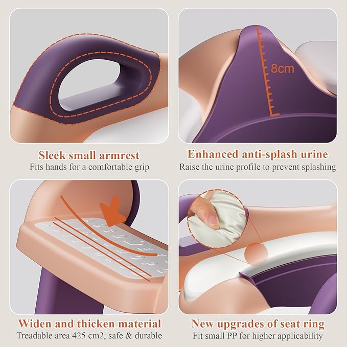 • Stable, Safe and Non-Slip: The four corners of the bottom of the toilet training seat for toddlers baby are non-slip to ensure safety and stability so that your child can use the potty step stool safely. Thickened material, more durable. Widened pedal area, convenient for toddlers to turn around and sit down, more assured to use