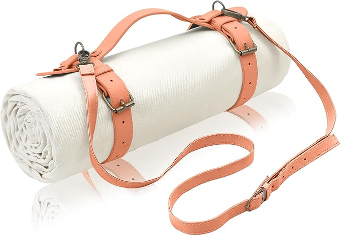 • Includes: 1 white canvas mat, faux leather handle/should strap, and webbing strap