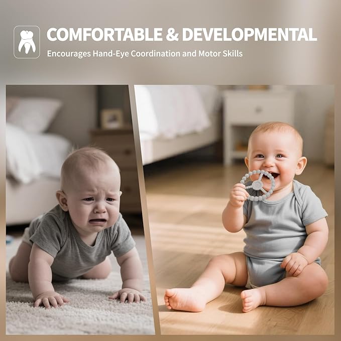 • Safe & Teething Relief Toys for Babies: Our food-grade silicone teething rings for babies 3-6 months are BPA-free, non-toxic, hypoallergenic and CPC-compliant. These teething toys offer soothing gum relief, are comfortable teethers for babies 6-12m.