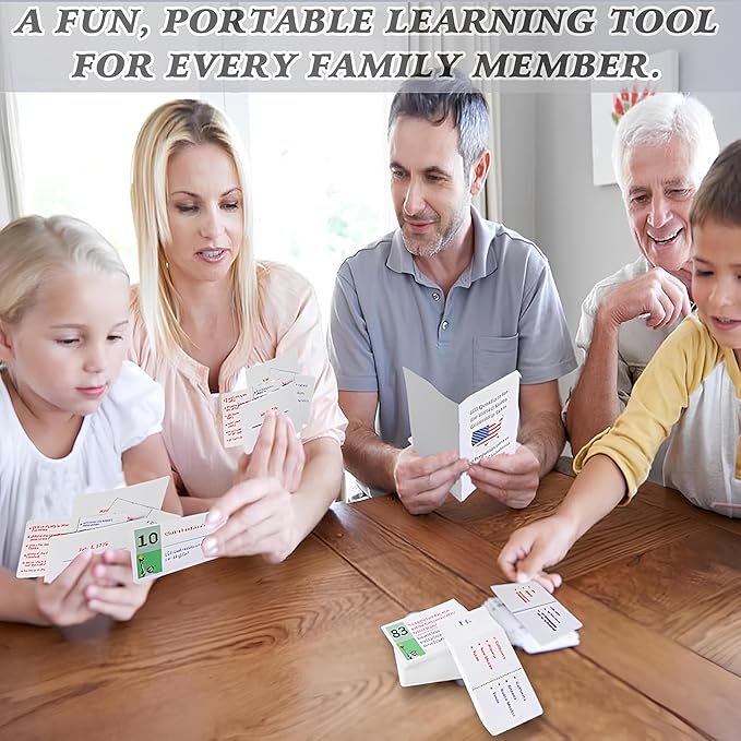 • 100 Essential Citizenship Questions Covers all 2025 USCIS test topics with official-style Q&A flashcards, including American history, government principles, and citizenship rights & responsibilities.