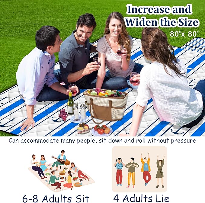 • 【🐋⚓🌟Larger and Thicker Design】This waterproof blanket can accommodate 6-8 people and can be used as a beach blanket,It create a designated space for family and friends to gather, eat together, play games, or simply enjoy each other's outdoors. They promote a sense of togetherness and make outdoor experiences more memorable and comfortable.