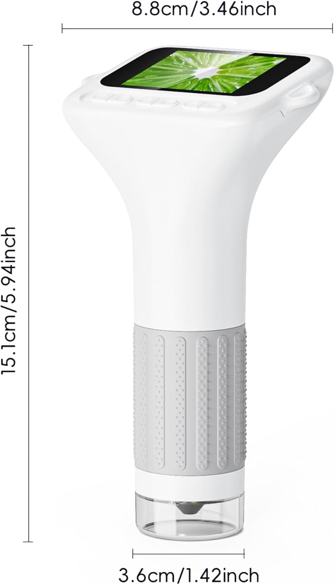 • 【1080P 2-inch Screen】This kids microscope features a 2-inch IPS HD screen with a 1080P resolution, vibrant colors, and clear image quality. The large screen allows kids to easily observe details and explore the fascinating microscopic world in real time.