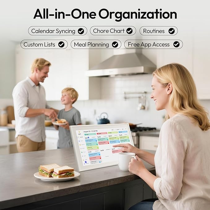 • [Interactive Chores Chart & Dinner Planner] Our digital calendar keeps housework organized and motivates family members, especially children, to develop healthy habits with an interactive chore chart. Display your family dinner plans to keep everyone informed and eliminate the daily "What's for dinner?" question.