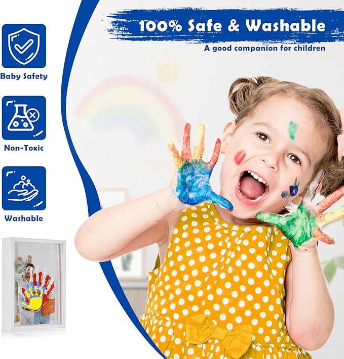 • Complete Family Handprint Kit with Picture Frame – This all-in-one set includes everything you need: premium-quality paints, brush, 4 transparent handprint sheets, and a stylish photo frame. Create lasting memories with your family and display them with pride!