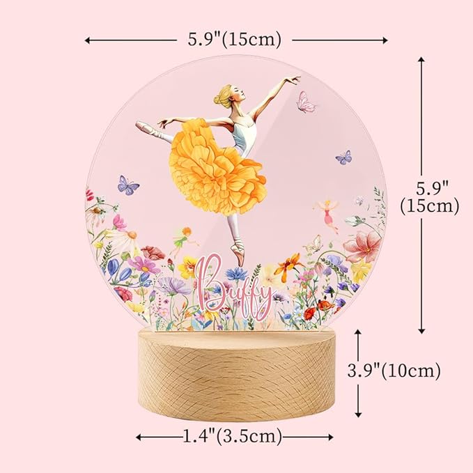 callie Acrylic Night Light Name Plate Personalized, Custom Cute Fox Deer Turtle Forest Animal with Wooden Base Bedroom Decor, Birthday Gifts Kid Gifts for Family (Beautiful Ballet Girl)