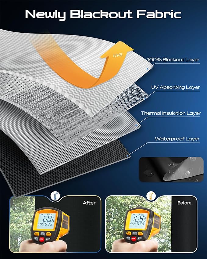 • Full-Scene Portable Application - The blackout curtain is compact and lightweight when folded, suitable for carrying during travel, camping, or temporary hotel shading. It supports multi-panel hook-and-loop splicing with a 5 cm overlap to cover extra-wide windows. Whether for bedroom sleep, living room movie viewing, office partitions, or RV space renovations, it meets diverse scene requirements