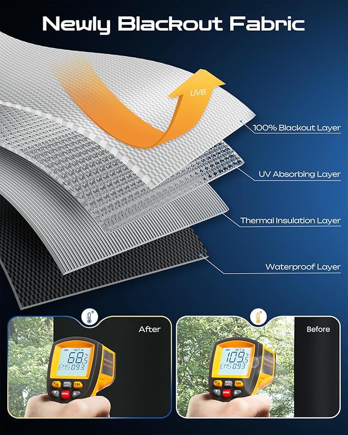 • Full-Scene Portable Application - The blackout curtain is compact and lightweight when folded, suitable for carrying during travel, camping, or temporary hotel shading. It supports multi-panel hook-and-loop splicing with a 5 cm overlap to cover extra-wide windows. Whether for bedroom sleep, living room movie viewing, office partitions, or RV space renovations, it meets diverse scene requirements