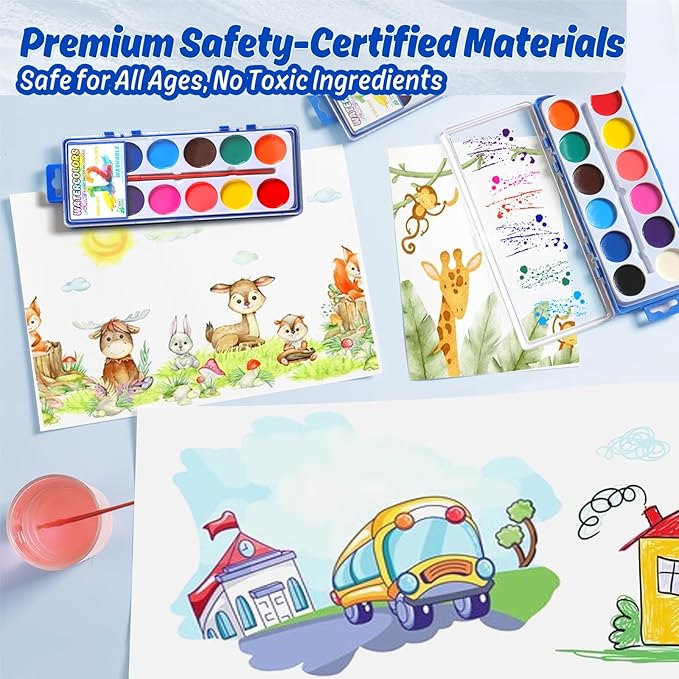 • Safe and Child-Friendly Materials: The watercolor paint set is made from high-quality, non-toxic materials, guaranteeing a safe creative environment for both children and adults. Enjoyable and worry-free painting experience, making it ideal for artists of all ages.