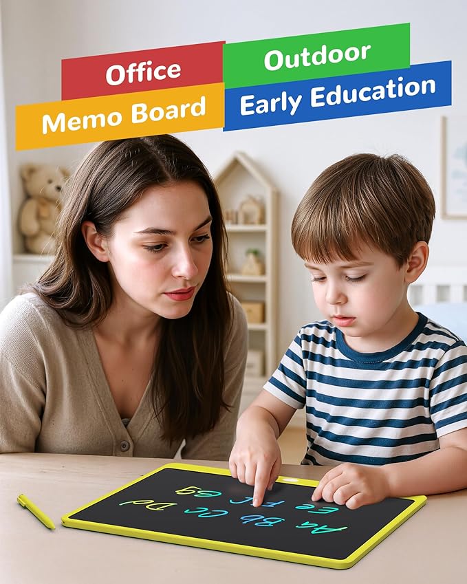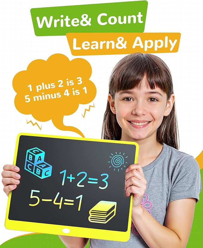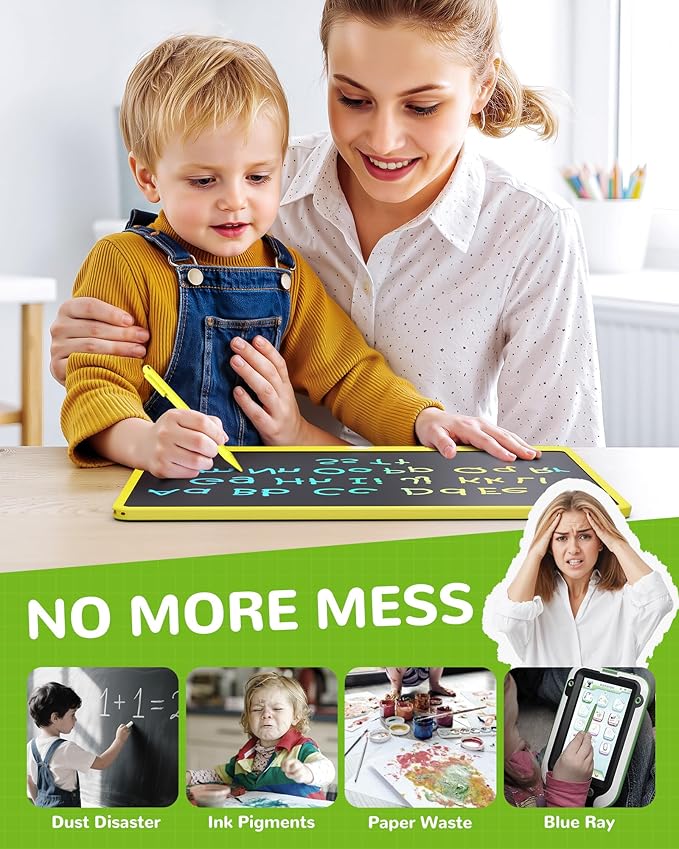 KOKODI LCD Writing Tablet, 16 Inch Colorful Toddler Doodle Board Drawing Tablet, Erasable Reusable Electronic Drawing Pads, Educational and Learning Toy for 3-6 Years Old Boy and Girls(Yellow)