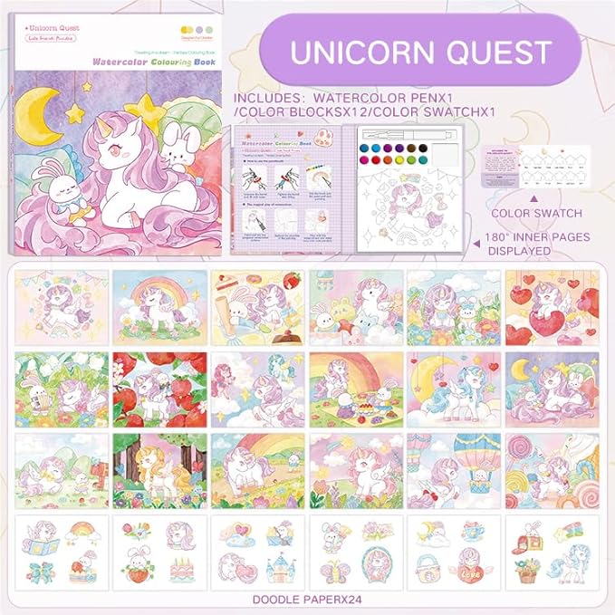 gesboole Paint with Water Coloring Books for Kids Ages 3-5, 4-8 – Cute Coloring Book for Teens,Arts and Crafts for Kids Ages 3 4 5 6 7 8+, Birthday Gift Toys for Girls Boys,Travel Toys -Unicorn